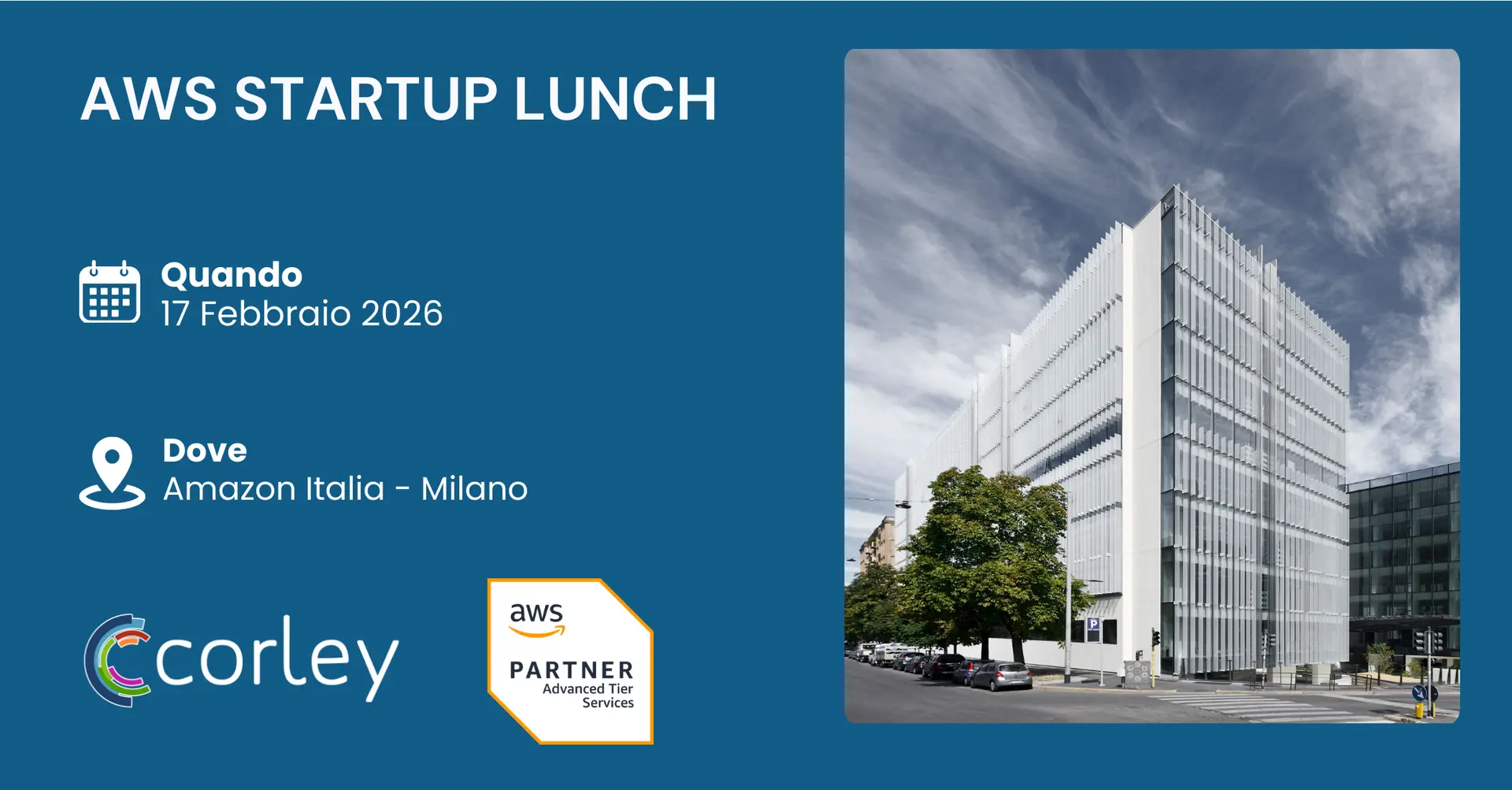 L'evento si terrà presso gli uffici di Milano di Amazon Italia (Viale Monte Grappa, 3/5) dalle ore 10:00 alle 15:00 di martedì 17 febbraio 2026 (verrà servito il pranzo in loco).